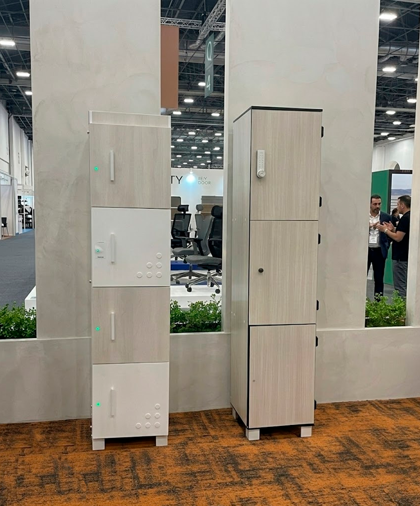 También generaron gran interés los lockers inteligentes, una solución alineada con las nuevas dinámicas del trabajo híbrido. Equipados con sistemas de acceso por proximidad, estos módulos permiten gestionar el almacenamiento personal de manera ágil y segura. Un aspecto técnico que llamó particularmente la atención fue el uso de material fenólico en su fabricación, elegido por su resistencia a la humedad, bacterias y desgaste, lo que los convierte en una opción durable para espacios de alta afluencia.