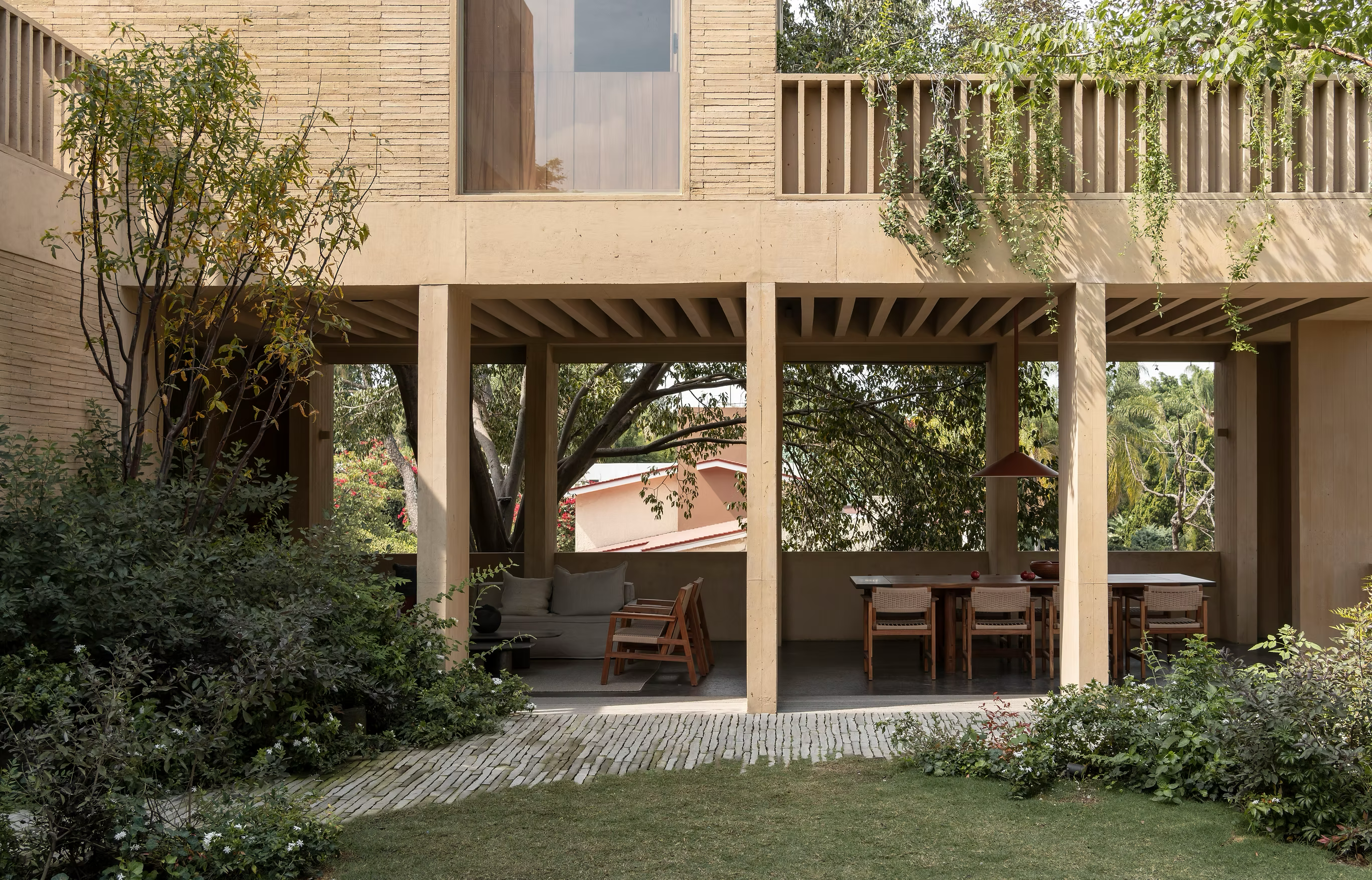 En Casa del Río, Estudio K V afina su exploración de la domesticidad contemporánea mediante una arquitectura introspectiva que privilegia la serenidad por encima del gesto. Organizada en torno a patios y vacíos, la casa es menos un contenedor que una serie de umbrales porosos entre lo íntimo y lo exterior.