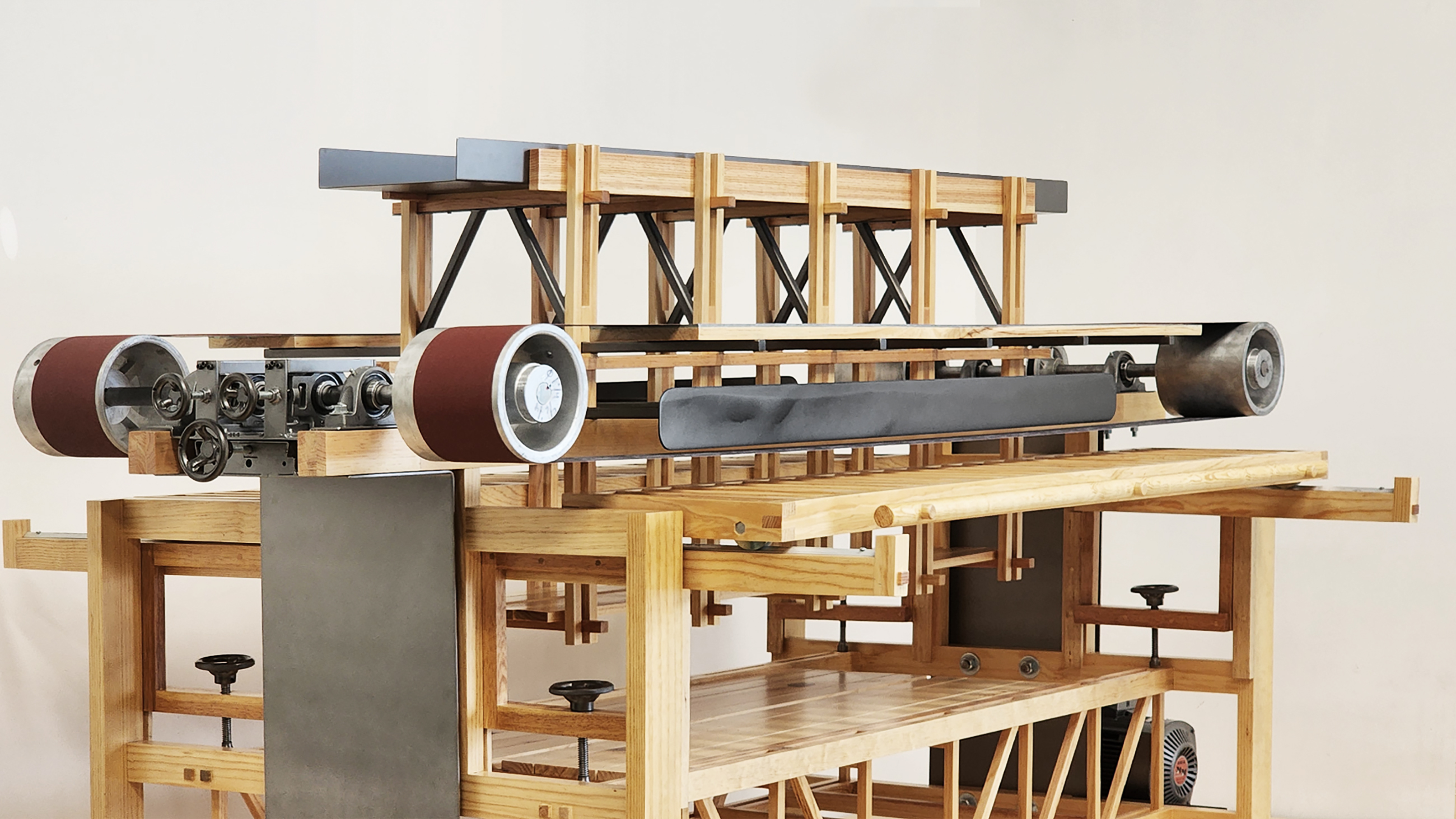 Otro proyecto, menos visible pero más revelador, fue la máquina de lijado que diseñaron junto a Sobrino Mobiliario, carpinteros con tres décadas de oficio. “Nos interesaba diseñar una herramienta, no un mueble”, explica Ventura. “Ver cómo una máquina también puede tener belleza, cómo optimiza el trabajo sin romper la relación con la mano.” El gesto sintetiza su manera de pensar: el diseño no se mide sólo por el resultado formal, sino por su capacidad de mejorar un proceso, de volverlo más consciente.