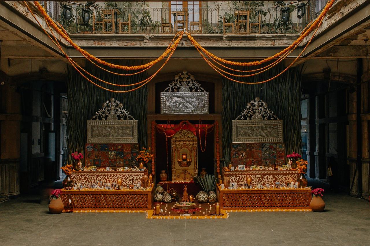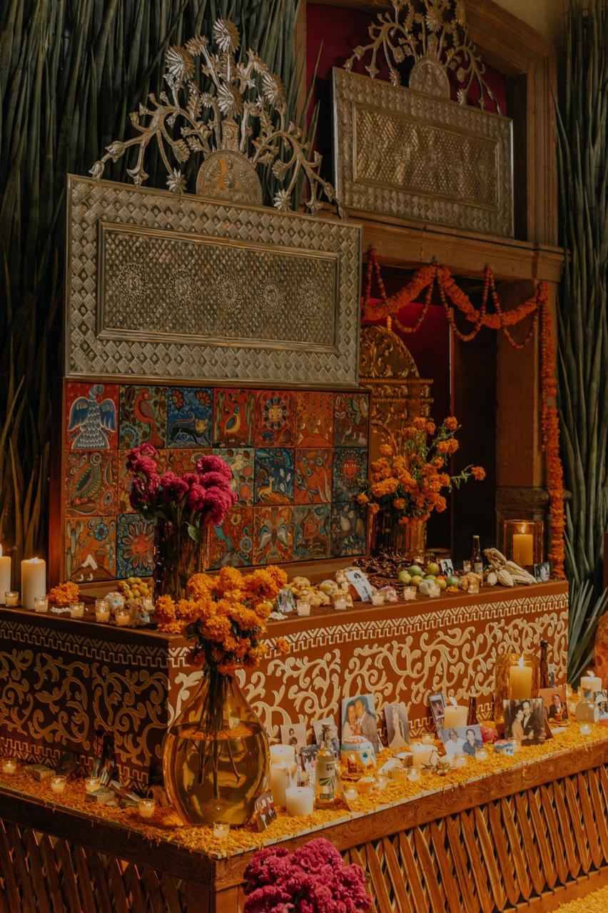 Producto de más de 9 meses de trabajo e investigación, el altar se construyó en dos niveles que dialogan entre lo terrenal y lo espiritual.