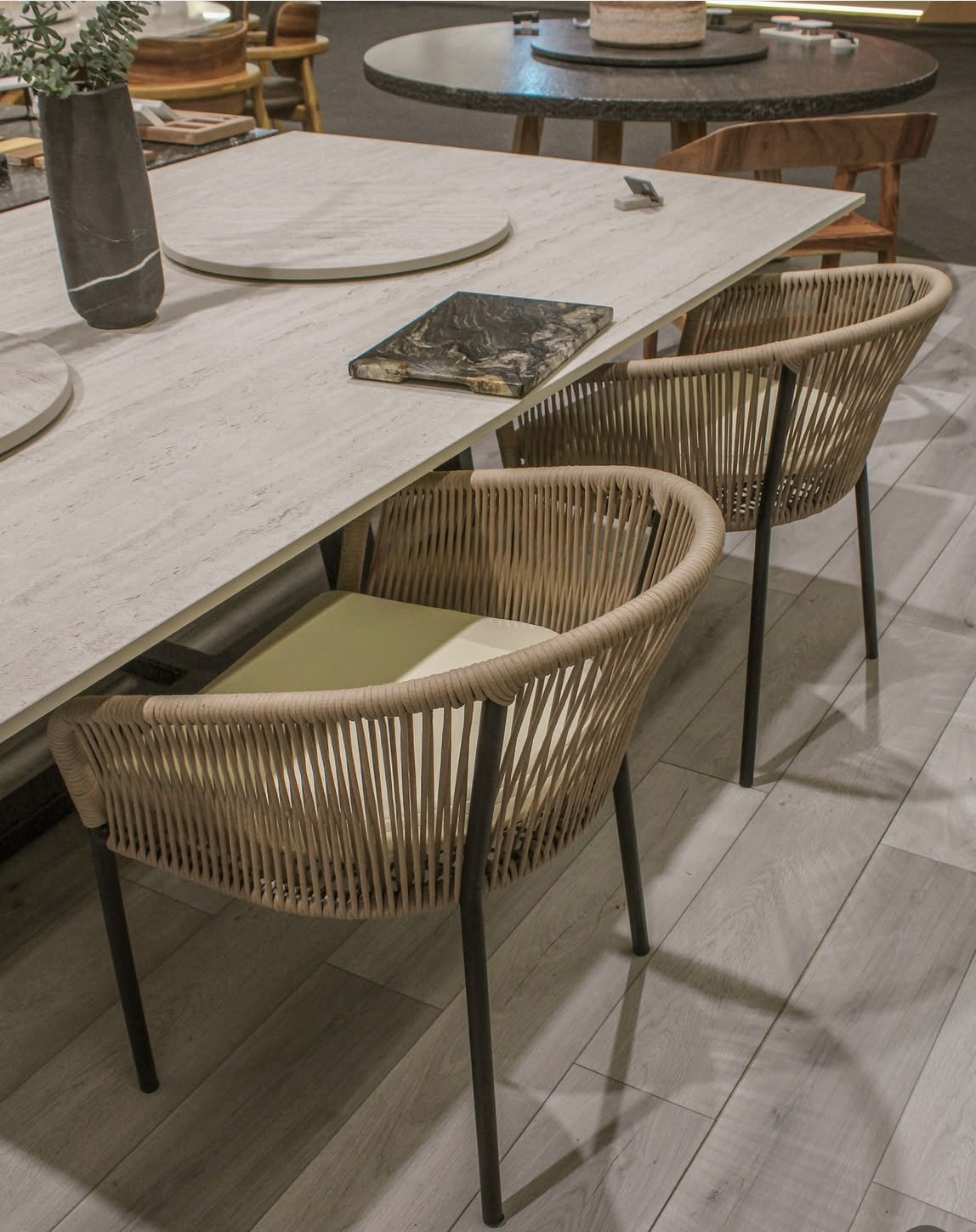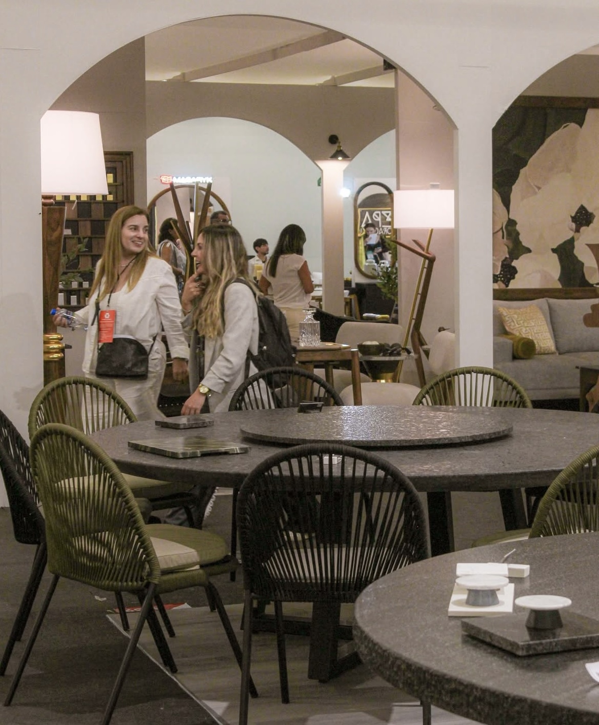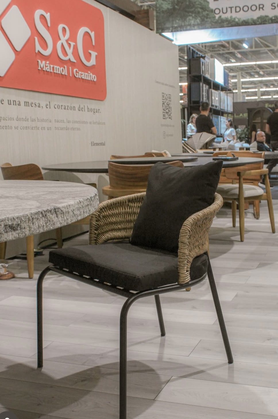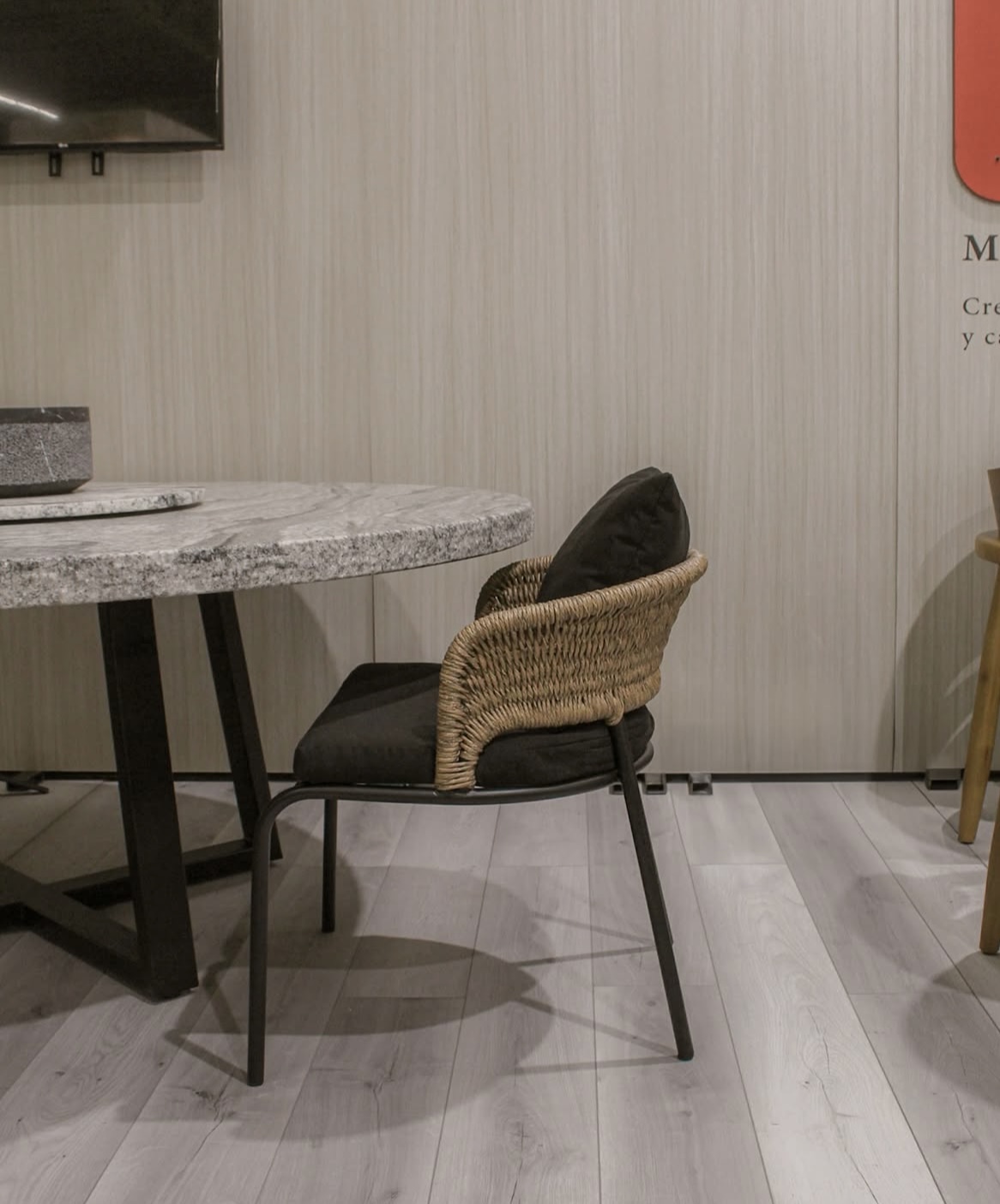 En Expo Mueble Internacional, ambas perspectivas encontraron un punto en común. Mesas pétreas acompañadas por sillas y bancos tejidos pusieron en escena cómo la unión de lenguajes opuestos puede generar atmósferas completas: solidez y ligereza, pausa y permanencia, textil y mineral. Más que una suma de productos, fue un ensayo sobre la capacidad del diseño para integrar diferencias y convertirlas en experiencia espacial.