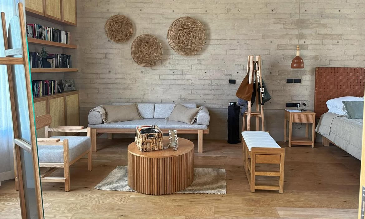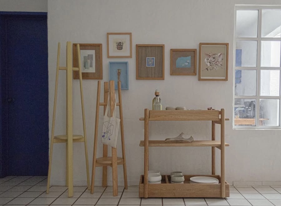 Un tercer ángulo lo ofrece Enzzambla, cuya propuesta modula la relación entre fabricación, transporte y adaptabilidad. Sus muebles prescinden de herrajes y se ensamblan mediante sistemas de encaje, lo cual reduce costos, facilita el envío y disminuye la huella ambiental. Aquí, la autoría se articula con la decisión técnica: un objeto que puede desmontarse y reconfigurarse sin perder solidez introduce nuevas lógicas de uso y mantenimiento. El énfasis en materiales accesibles, procesos manuales complementados por mecanizado y un taller situado en zona rural revela un modelo donde producción y territorio se piensan juntos. La trazabilidad no es una etiqueta, sino una práctica diaria.