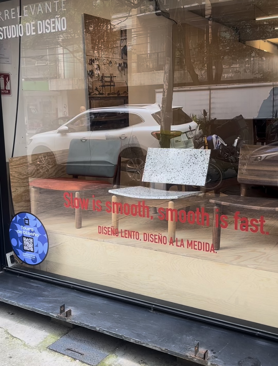 Irrelevante no busca ser un manifiesto ni un escaparate. Es un espacio que respira a pie de calle, donde las piezas cambian con el paso del tiempo, los materiales se agotan y vuelven, y las ideas se mezclan con el polvo del taller y el aroma del café. “Lo más valioso es la gente que entra por curiosidad y termina conversando sobre diseño”, dice Collado. “Eso es lo que queríamos: que el espacio siguiera vivo, no perfecto”.